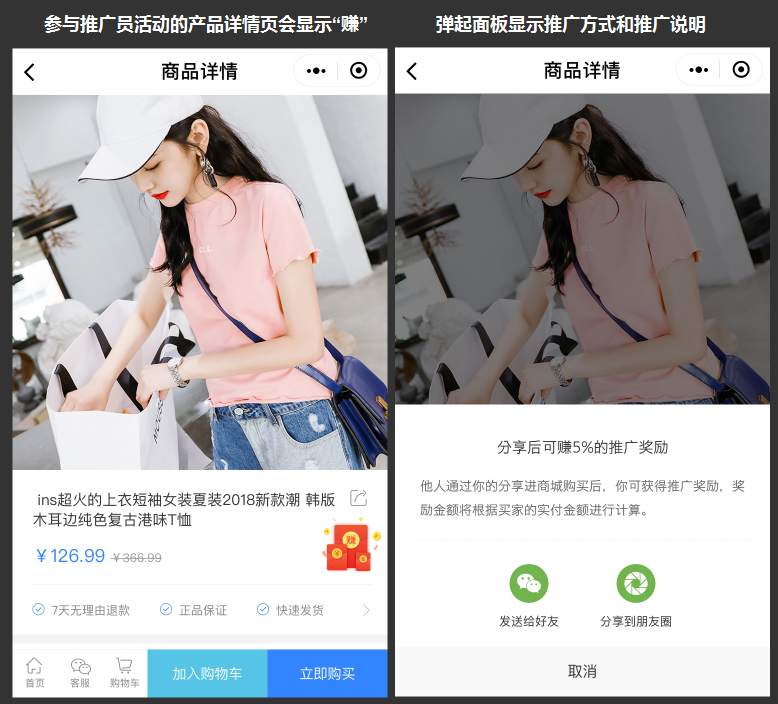 b.在參與推廣活動的產品的產品詳情頁點擊“賺”的標識,將產品分享給好友或朋友圈。